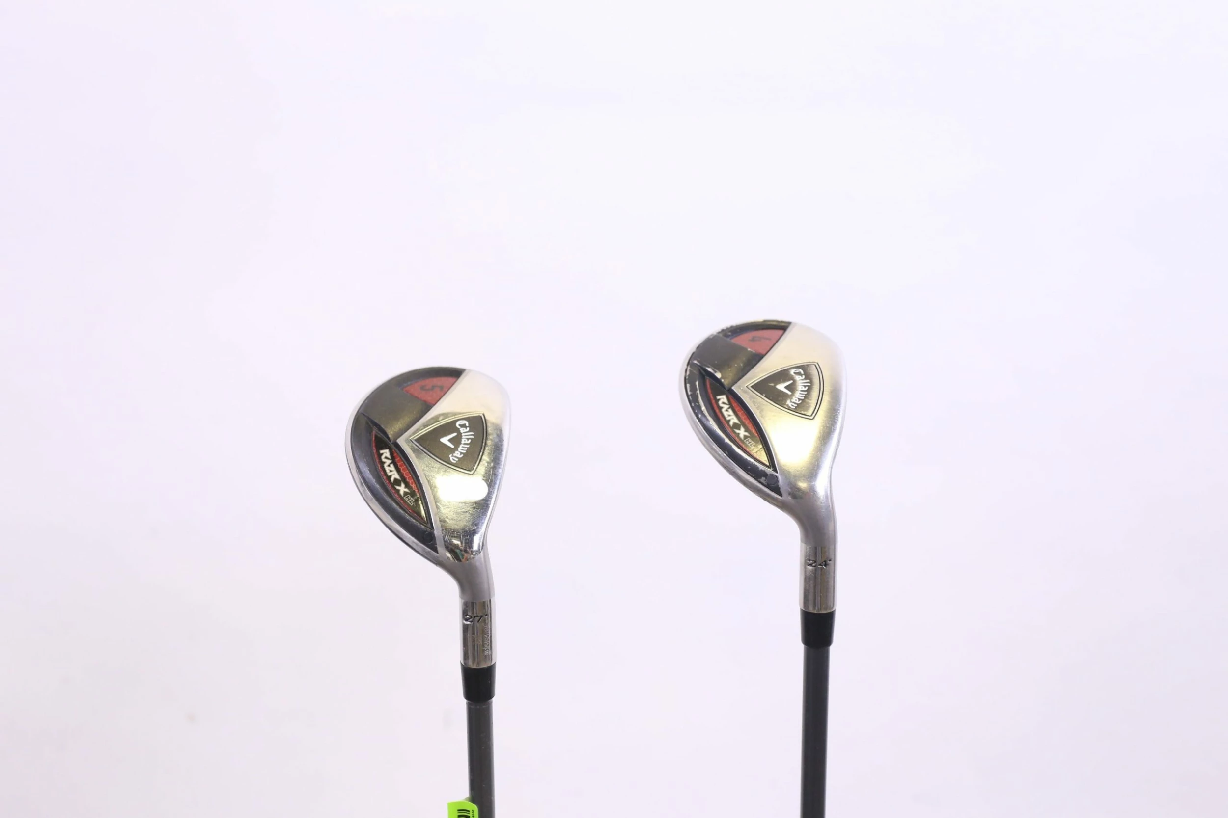 EXCELLENT – This Hybrid set is in excellent condition. Very minor wear and markings located around the heads of the clubs and within the faces of the clubs due to normal play and storage. Club shafts and grips are all fully attached, and in good condition. See pictures for more detail.