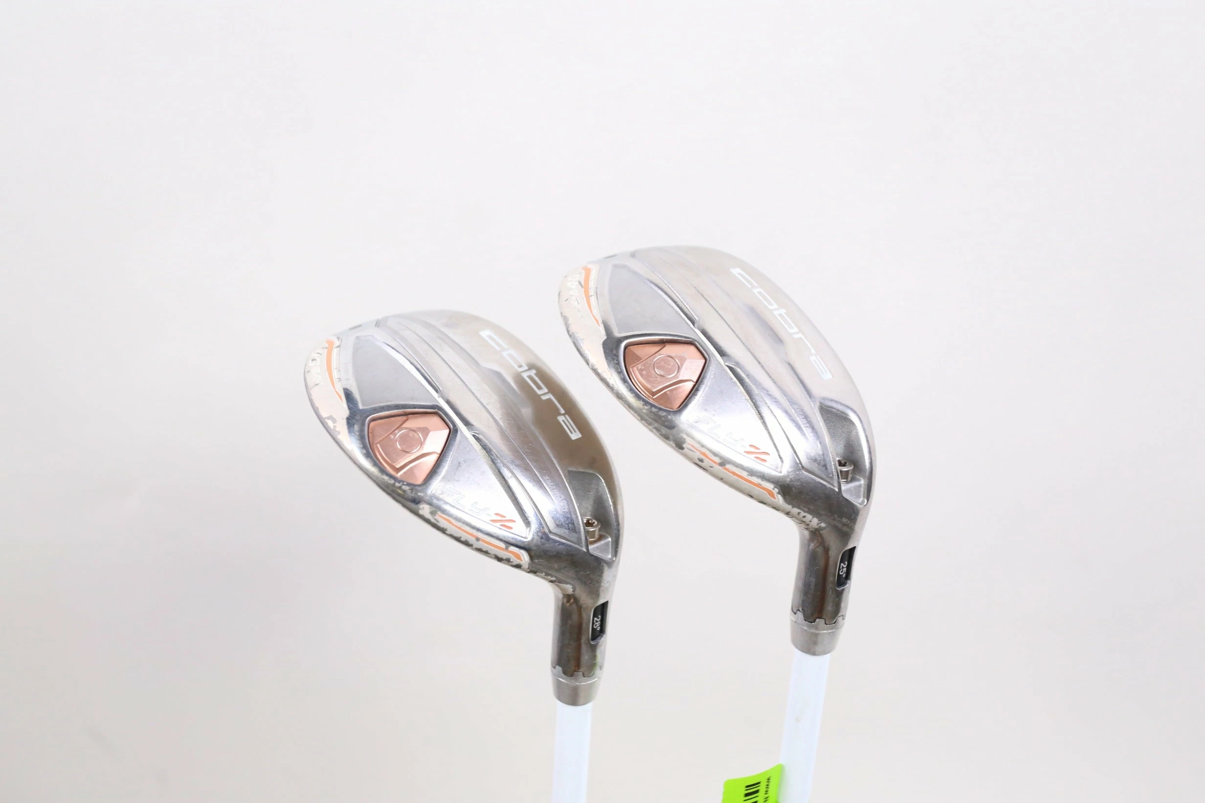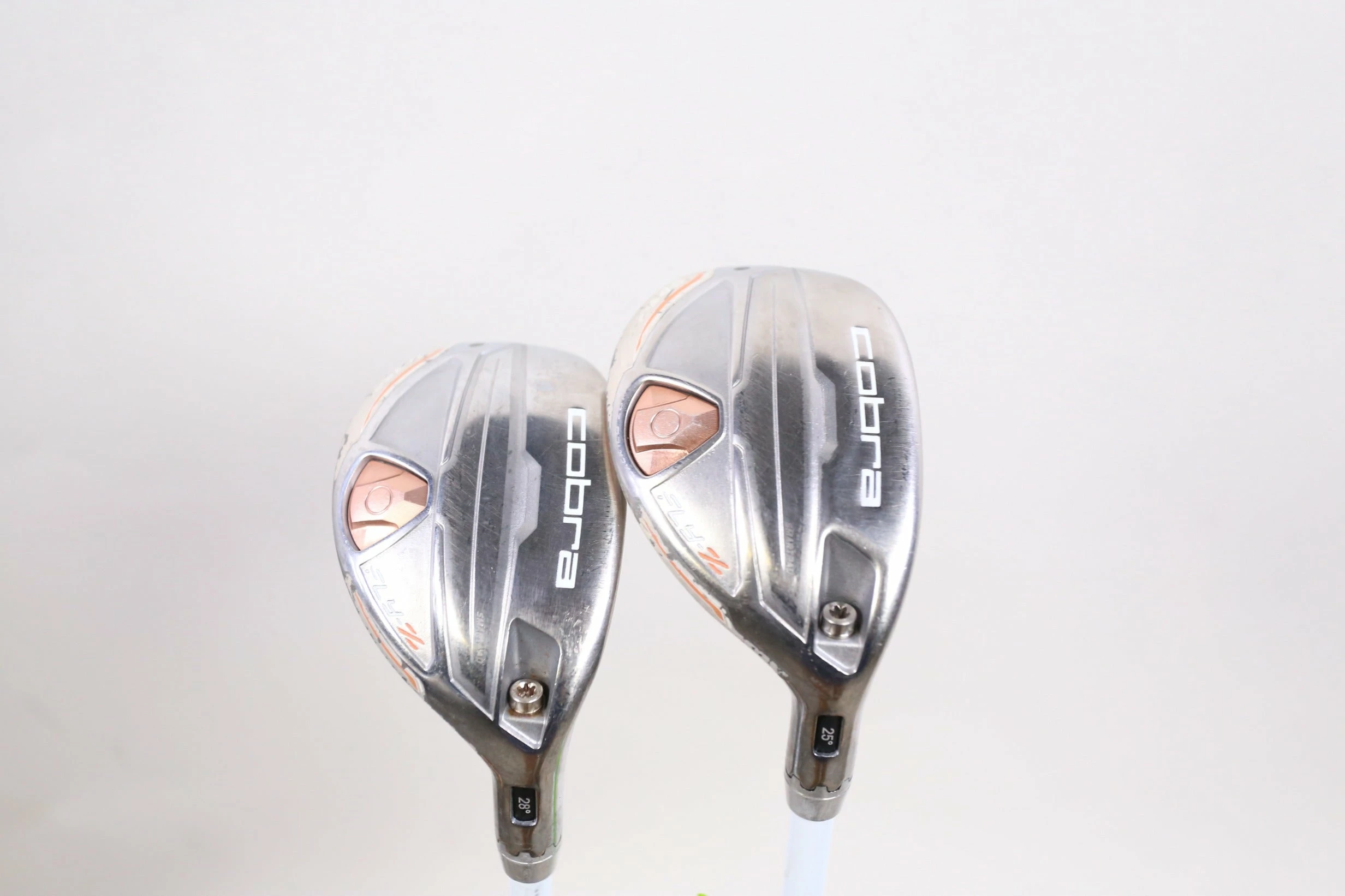GOOD – This hybrid set is in good condition. There is average wear around the heads and on the faces of the clubs from regular use. There are very small markings and scratches along the shafts from normal use and storage. The grips are in good condition with some wear from regular use and storage. Please see pictures for more details. *4H 25* 39 inches. *5H 28* 38 inches.