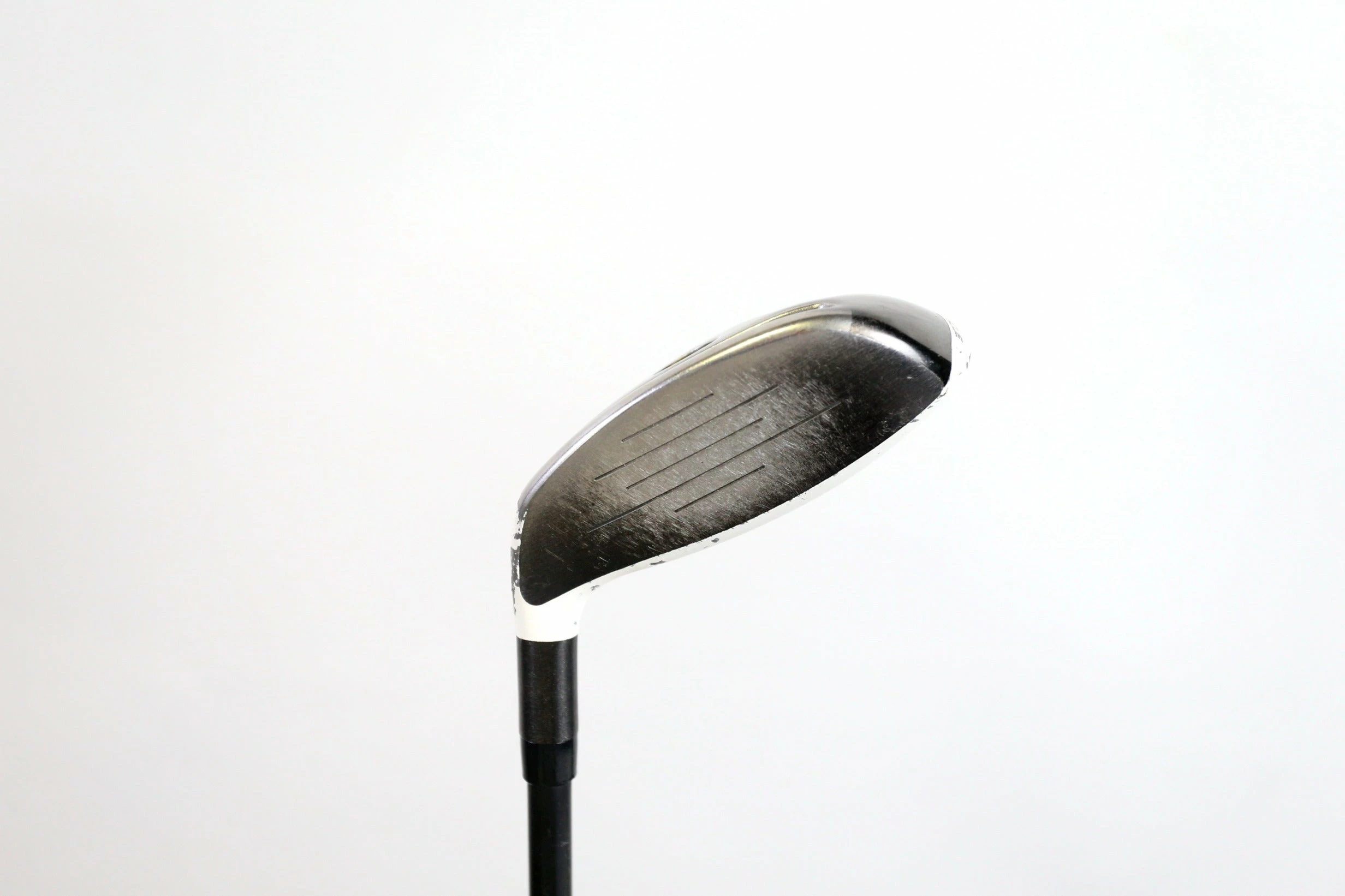 VALUE- This TaylorMade hybrid is in value condition. There is wear around the head and on the face of the club from play and storage. There are small markings and scratches going along the shaft from regular handling and storage. The grip is in good condition with light wear from normal handling. Please refer to the pictures provided for more details.Small dent on head of club